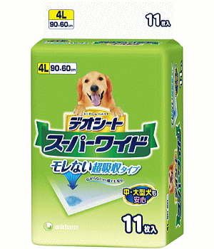 ★エントリーしてポイント5倍★ユニチャーム デオシート スーパーワイド 18枚価格: 1,630円レビュー評価: 0.0 レビュー数:0 ■内容量:18枚入り■サイズ:約90×60cm■メーカー:ユニ・チャーム ペットケア 株式会社 トイレタリーグッズ ペットシーツ デオシート スーパーワイド 長時間でもモレない、ニオわない超吸収タイプのペットシート! オシッコをすばやく小さく閉じ込める、スポット吸収。 長時間タイプなので、一日に何度も取り替えなくて済み、ゴミの量も軽減し経済的です。 中・大型犬でも周りを汚さない、新聞見開き大90×60cmの安心サイズ。 中・大型犬にも安心の吸収力♪ 小型犬のオシッコ1日分(約150cc)をらくらく吸収します。 レギュラーサイズの約4倍の大きさ。 製品サイズとラインナップ *レギ |